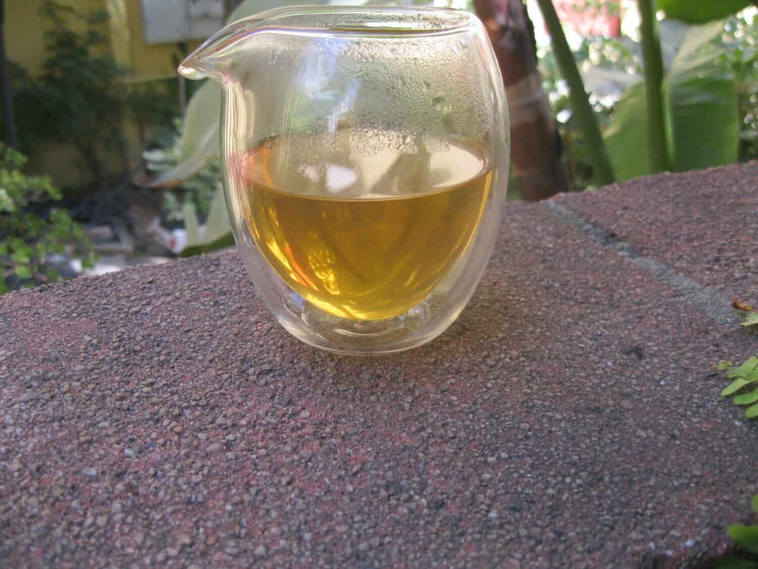 Floral Fruity Class Medium thick texture. Especially delightful huigan, comes through the nose, quick sweet slickness on tongue: lily, strawberry, and cantaloupe symphony. Astringency stings tongue, reaches throat, and lingers. Strawberry and tangerine. Not drying but gentle salivation piquing. Filling big thickness. Uplifting qi. Lincang, Xigui early spring material. In Los Angeles since Jun ’15.