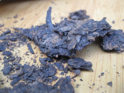 Sweetness builds from the first to third steeps, forming a layered interplay of savory and bitter that’s ideal for fans of mid-aged ripes. Some light fruit is also starting to emerge. This brick thermoses and stacks just as well, making it a sophisticated selection for contemplative drinking.